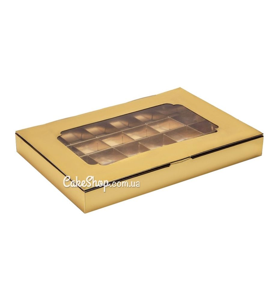 Коробка на 24 цукерки з вікном Золото, 27х18,5х3 см