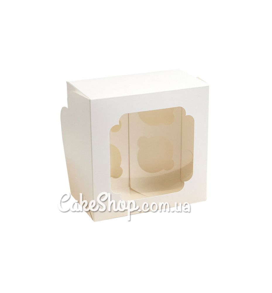 Коробка на 4 кекси з фігурним вікном (2 вкладки) Біла, 17х17х10,5 см