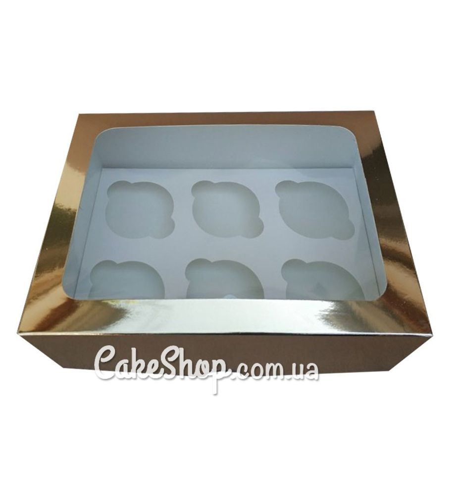 Коробка на 6 кексів з прозорим вікном Золота, 24х18х9 см