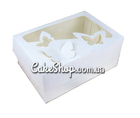 Ціна на Коробка на 6 кексів з метеликами Біла, 25х17х9 см дорівнює 23 грн.