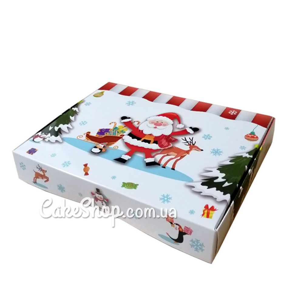 Ціна на Коробка з Сантою і оленем без вікна, 20х15х3 см дорівнює 25 грн.