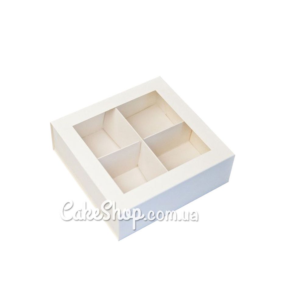 Ціна на Коробка універсальна Біла з вікном, 16х16х5,5 см дорівнює 30 грн.