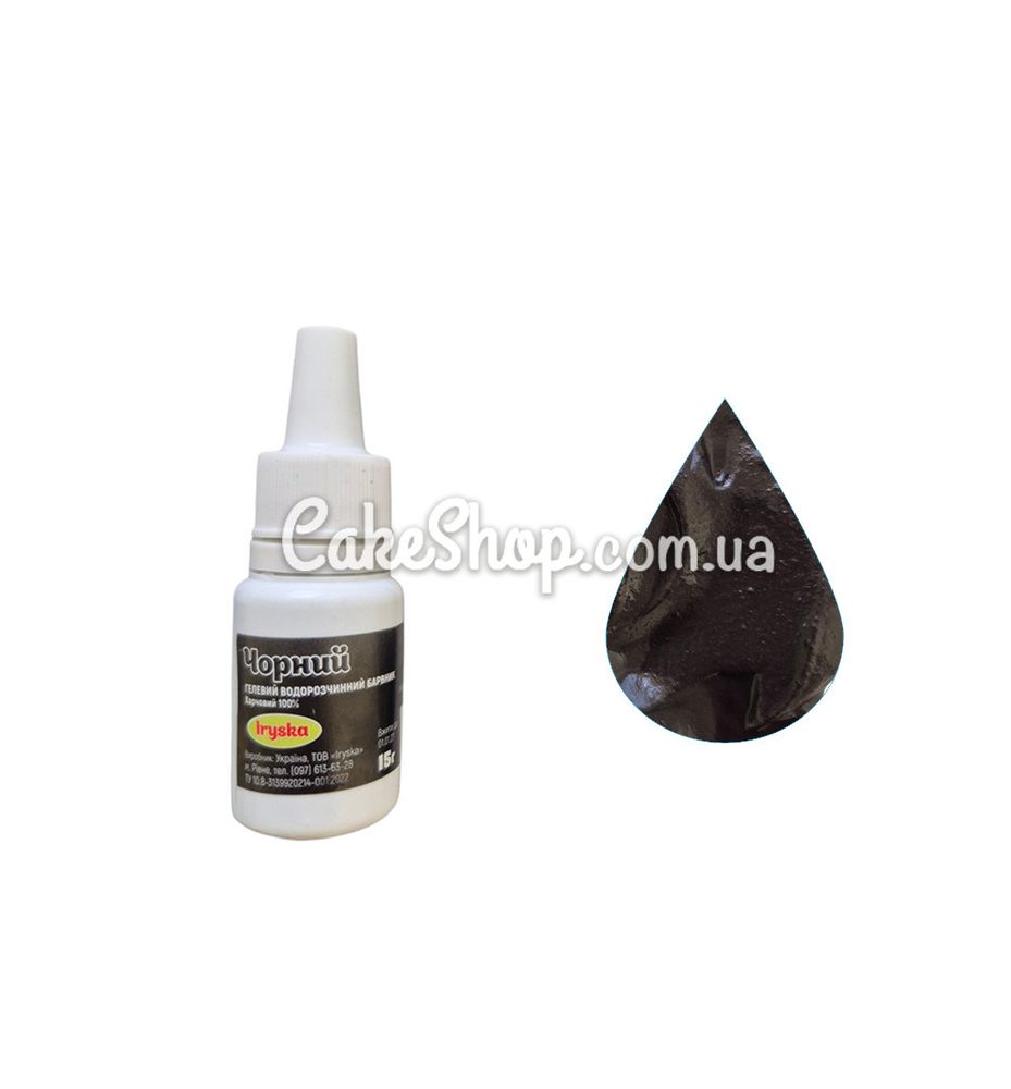 Ціна на Барвник гелевий Іриска водорозчинний Чорний, 15 г дорівнює 45 грн.