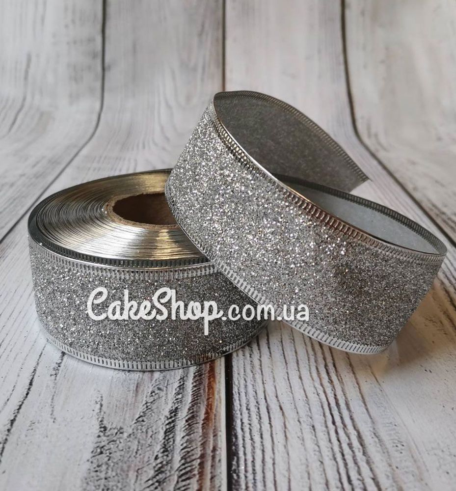Ціна на Стрічка для декору з дротовим краєм Срібна, 4 см дорівнює 25 грн.