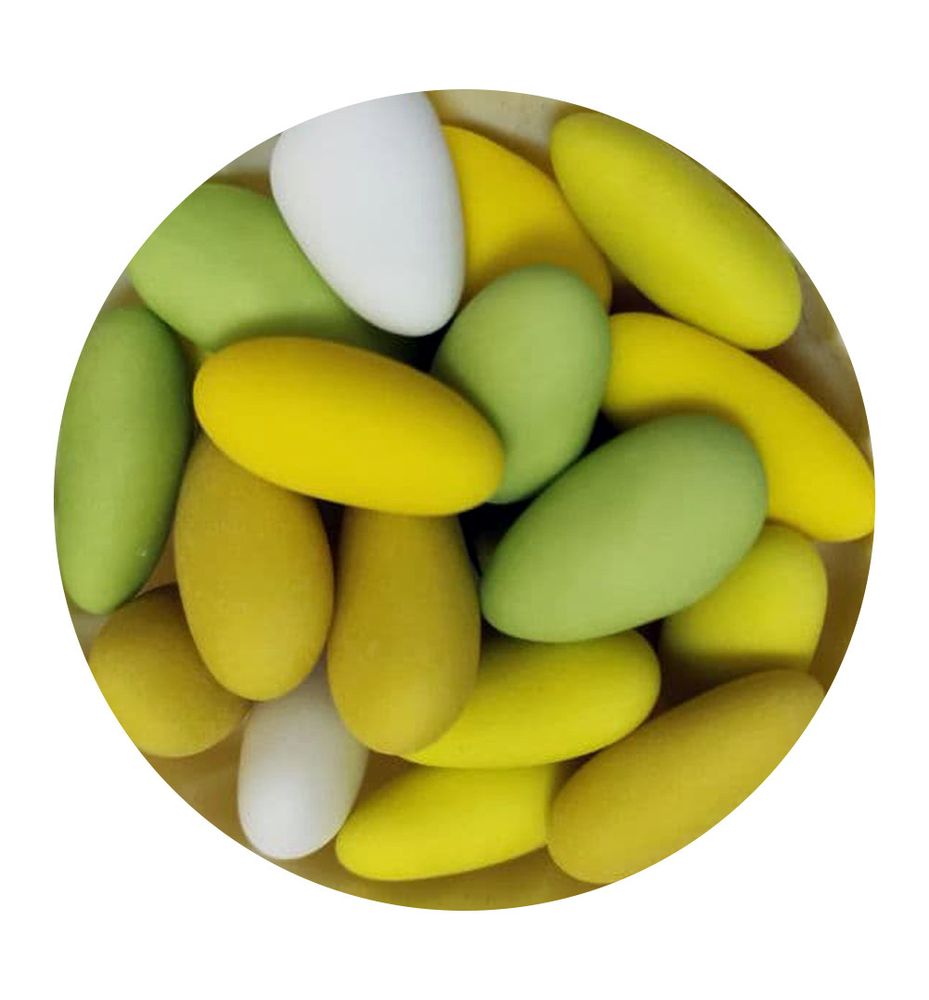 Мигдаль в шоколаді - це кондитерський декор, виготовлений з натурального мигдалю в шоколадній глазурі, забарвлений харчовими барвниками.