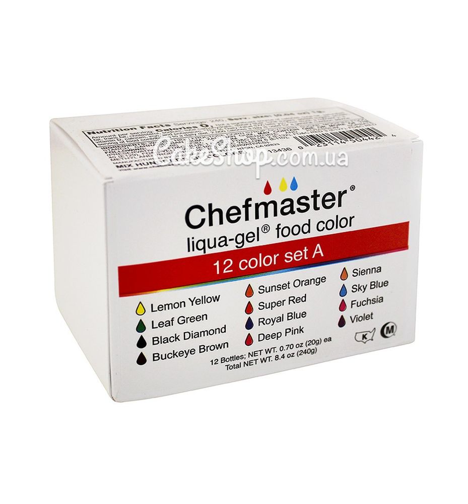Ціна на Набір барвникі Chefmaster Liqua-Gel Set A, 12 шт дорівнює 1230 грн.