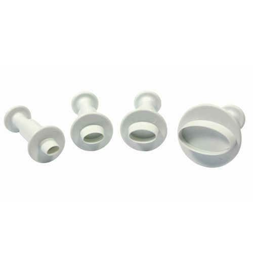 Плунжер — це та ж вирубка, але з виштовхувачем. Плунжери, так само, як і вирубки, виготовляються з міцного харчового пластику. Плунжер складається з безпосередньо вирубки і ручки з виштовхувачем, за допомогою якого Ви легко зможете витягнути готову форму. Даний кондитерський інструмент дозволить Вам ще більшою мірою насолоджуватися роботою з мастикою і марципаном, роблячи її менш трудомісткою і більш приємною і творчою. Рекомендуємо замовляти відразу кілька плунжерів різного розміру. Це дозволить Вам створювати об'ємні фігурки. Використовуючи плунжер, можна також прикрашати бічні частини тортів візерунками. Для цього просто не дожимайте виштовхувач плунжера до кінця.