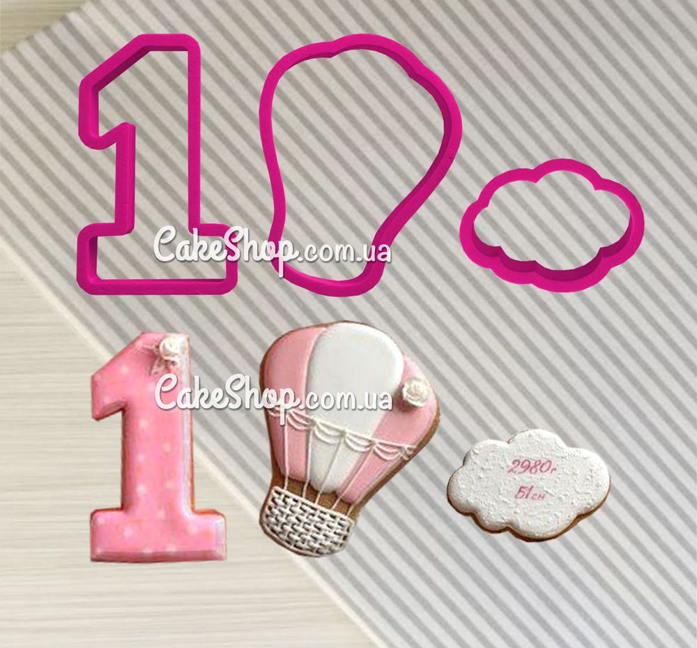 Розміри: повітряна куля і 1 висотою - 9 см, хмаринка - ширина 6 см, висота 4,5 см