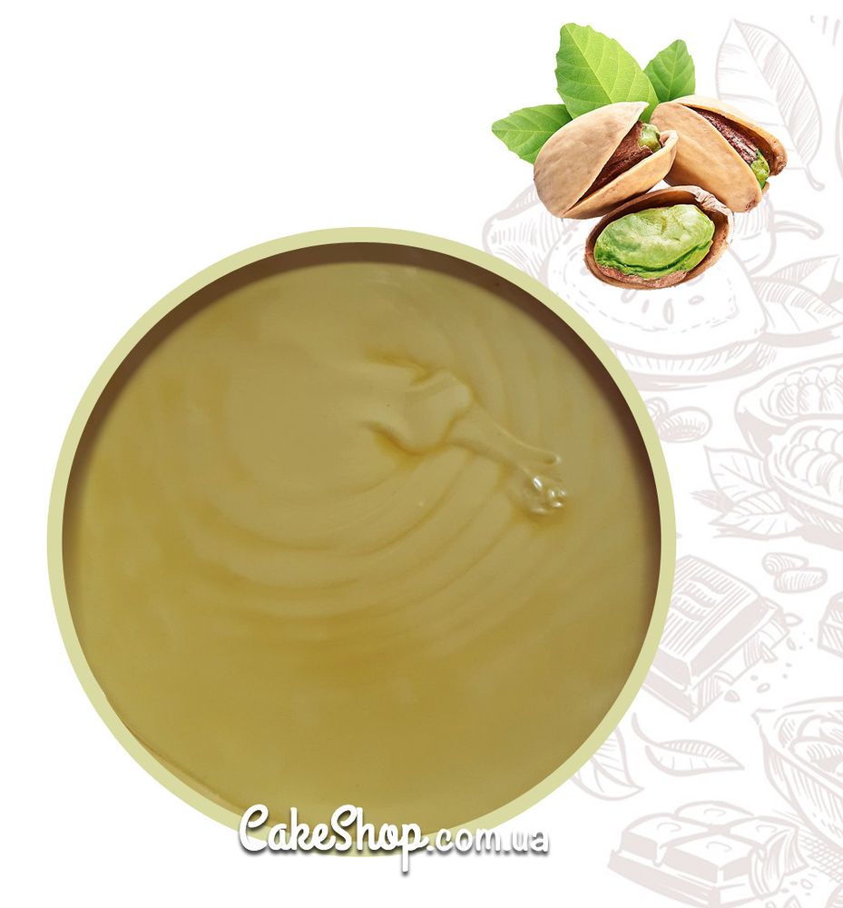 Фісташкова паста, повністю готова до використання. Для оформлення і прошарку тортів, тістечок, глазурування заморожених кондитерських виробів.