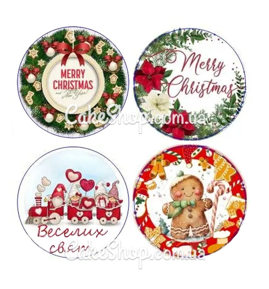 Наліпка Новорічний мікс 2024 круг, 25 шт