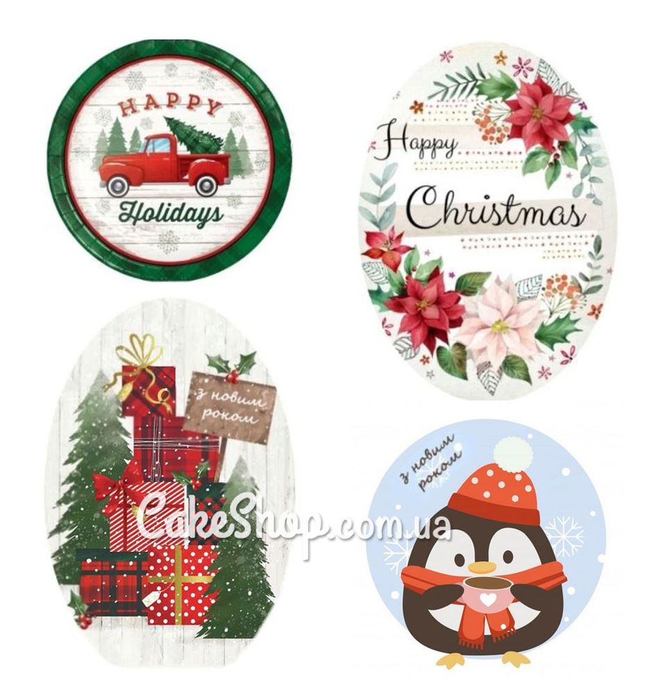 Новорічні наліпки на упаковку з вашим виробом як ніколи актуально під Новий рік.