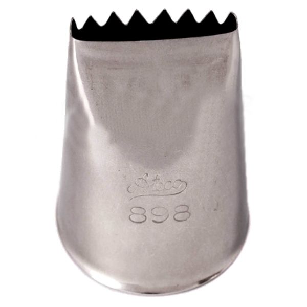 Насадка Ateco # 898 використовується для декору тортів бордюрами з крему, а також для прикрас у вигляді плетіння кошиків. Така насадка здатна створити красиві рифлені смужки.