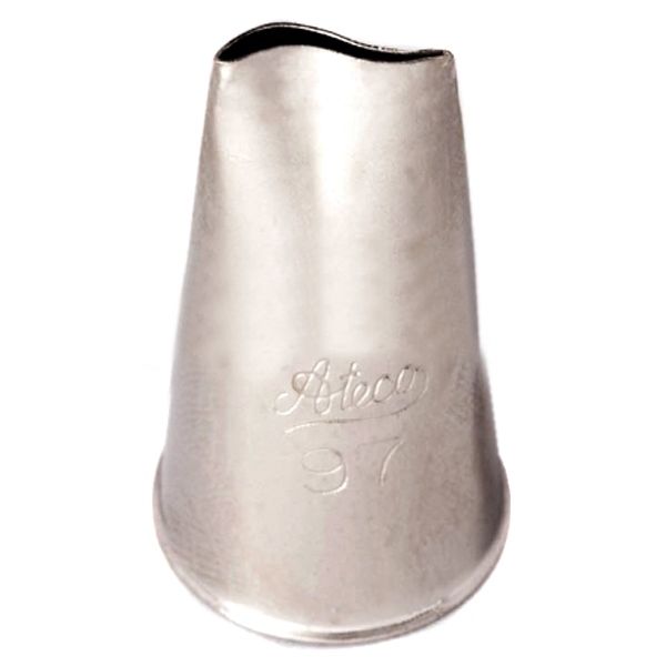 Насадка Ateco # 97 призначена для створення реалістичних прикрас у вигляді пелюстків троянд, квітів троянд, драпіровок, рюш, ламбрекенів, і бантів.