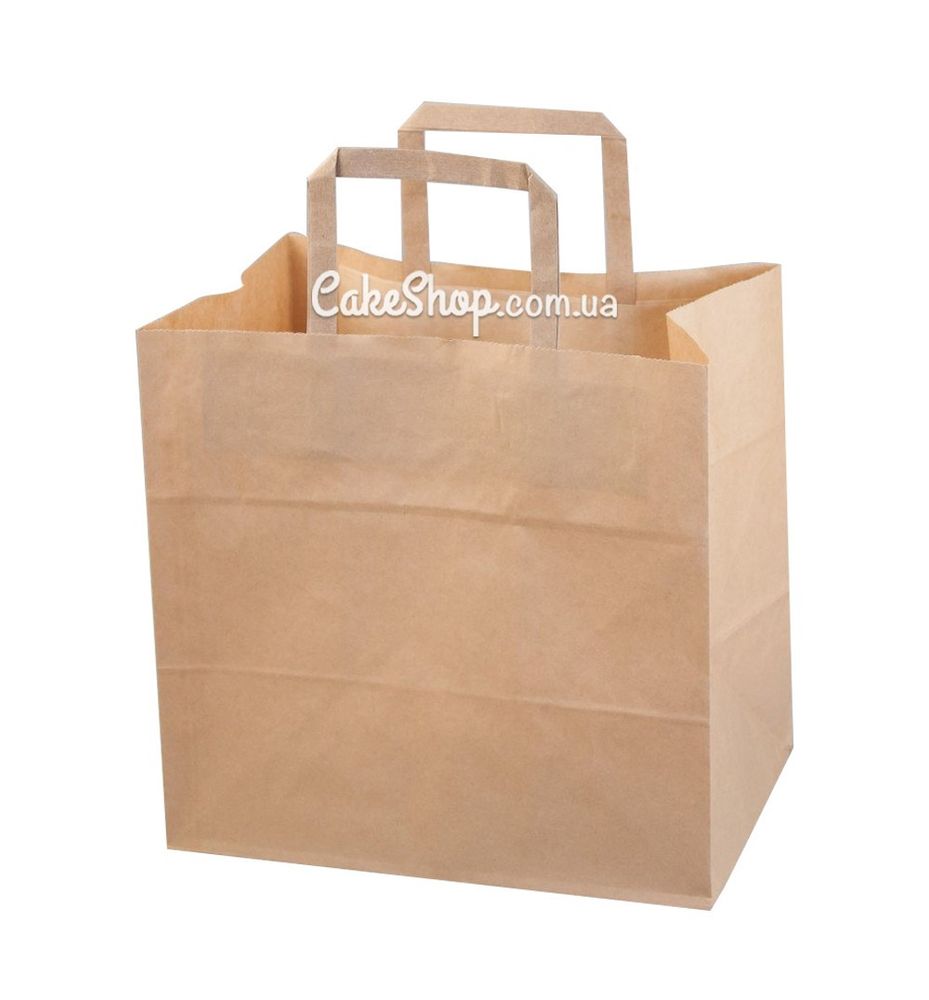 Ціна на Пакет паперовий з пласкими ручками Крафт, 26х25х18 см дорівнює 12 грн.
