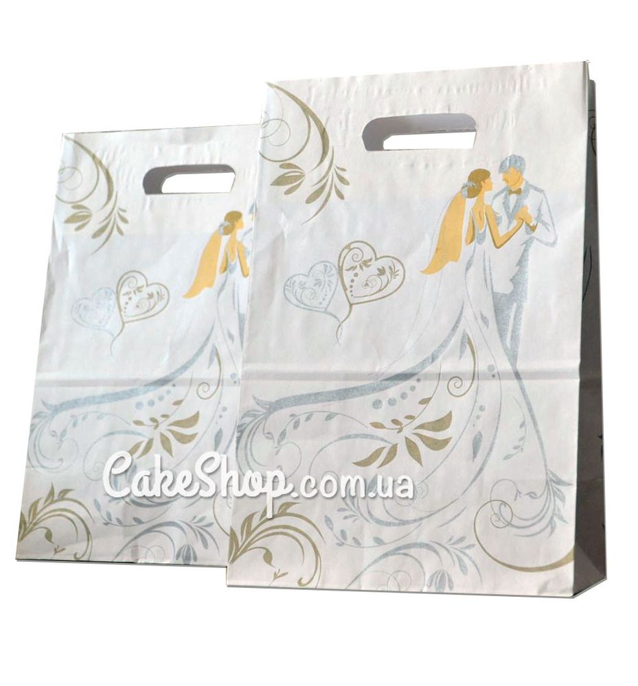 Паперові весільні пакети з тематичним малюнком - це не тільки сучасна, зручна, красива. але і дуже практична упаковка. Пакети з екологічно чистого, щільного, білого крафта. Дно і ручки пакета посилені і проклеєні. Всі пакети відмінної якості.