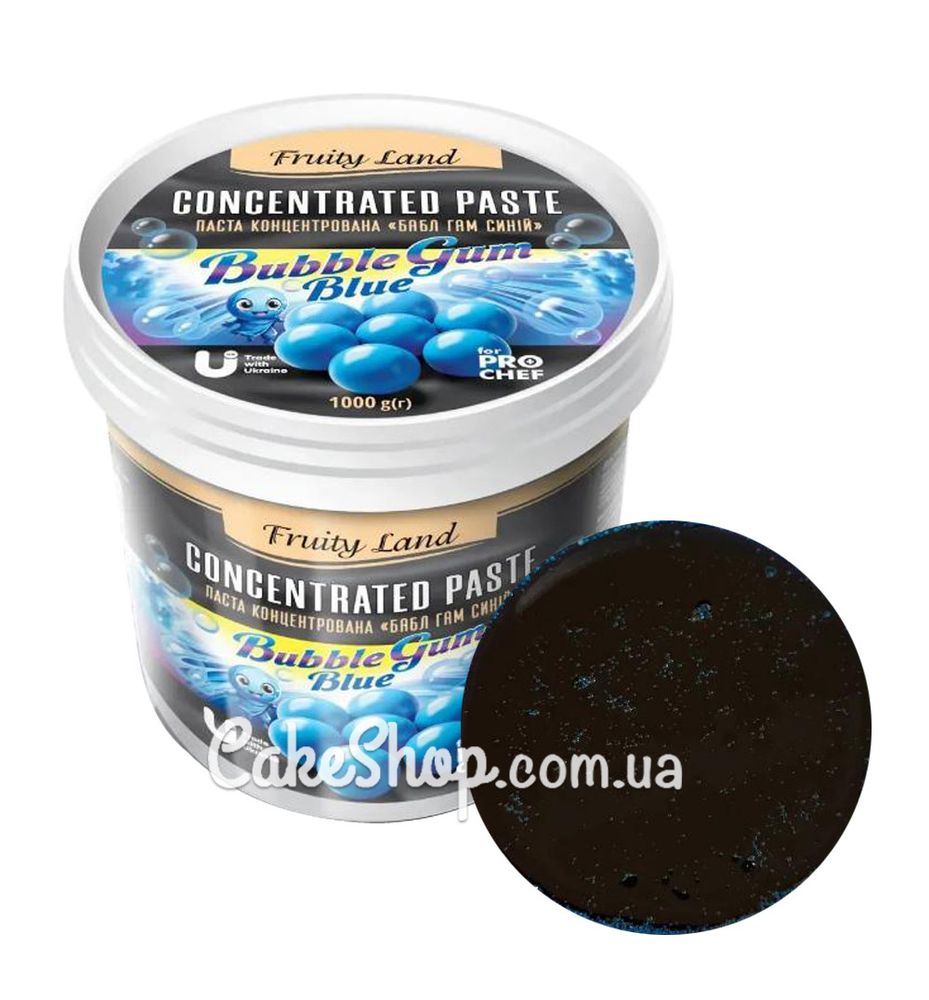 Паста концентрована Bubble Gum (блакитна жуйка) Fruityland, концетрований ароматизатор із яскравим смаком жувальної гумки. Використовується як ароматизатор та барвник для тортів, кексів, морозива. Її особливо цінують за високу концентрацію, завдяки якій навіть невелика кількість може наситити смак продукту