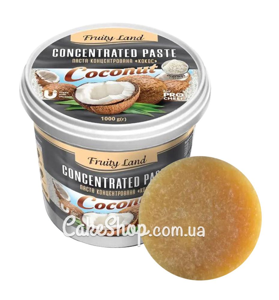 Паста концентрована Кокос (зі стружкою) Fruityland, це натуральна ароматна паста, виготовлена з м'якоті кокоса з додаванням кокосової стружки.