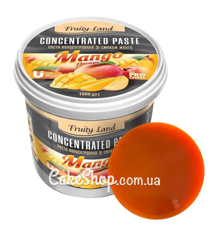 Паста концентрована Манго Fruityland, це харчовий ароматичний інгрідієнт на основі фруктових концентратів. Паста використовується в кондитерському та харчовому виробництві для надання інтенсивного смаку, кольору та аромату.