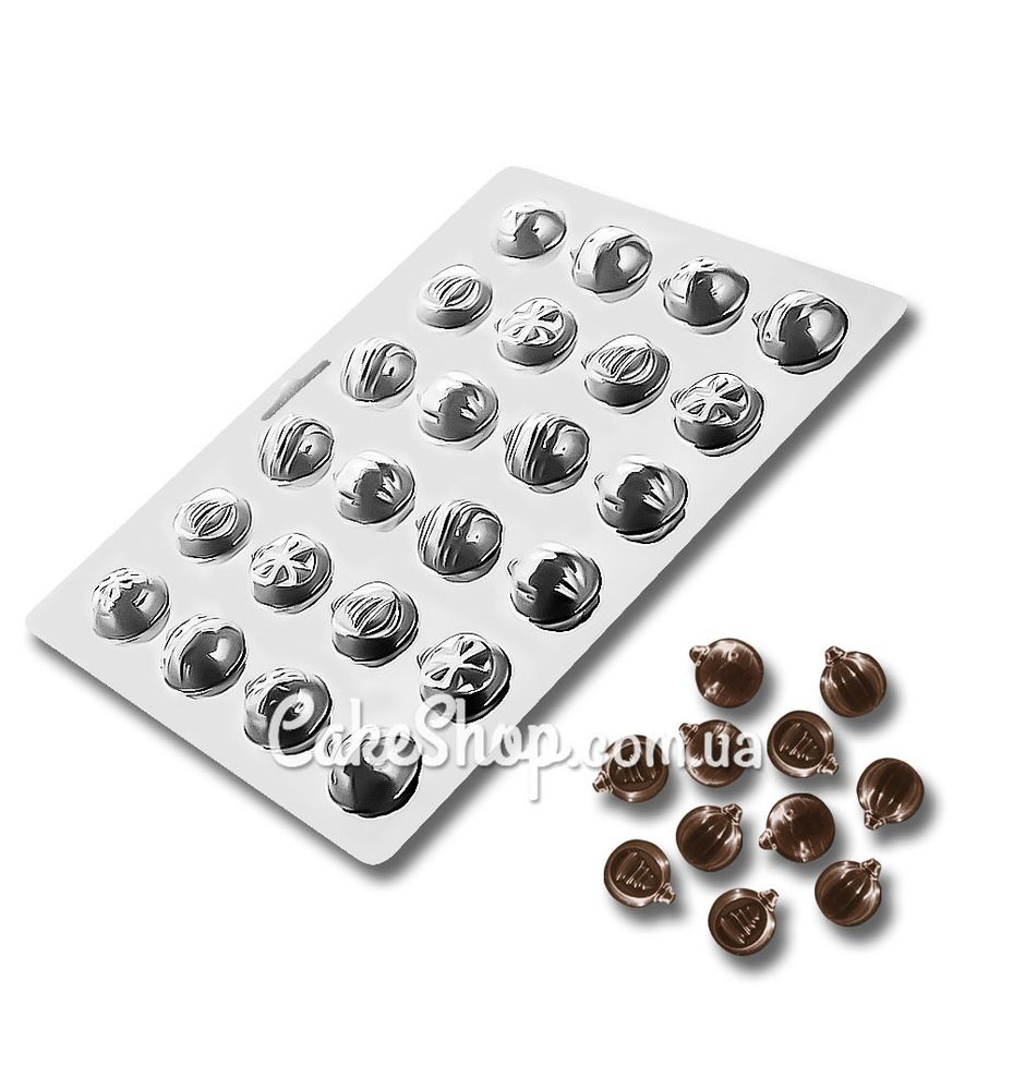 Ціна на Пластикова форма для шоколаду Новорічні кулі, d 2см дорівнює 60 грн.