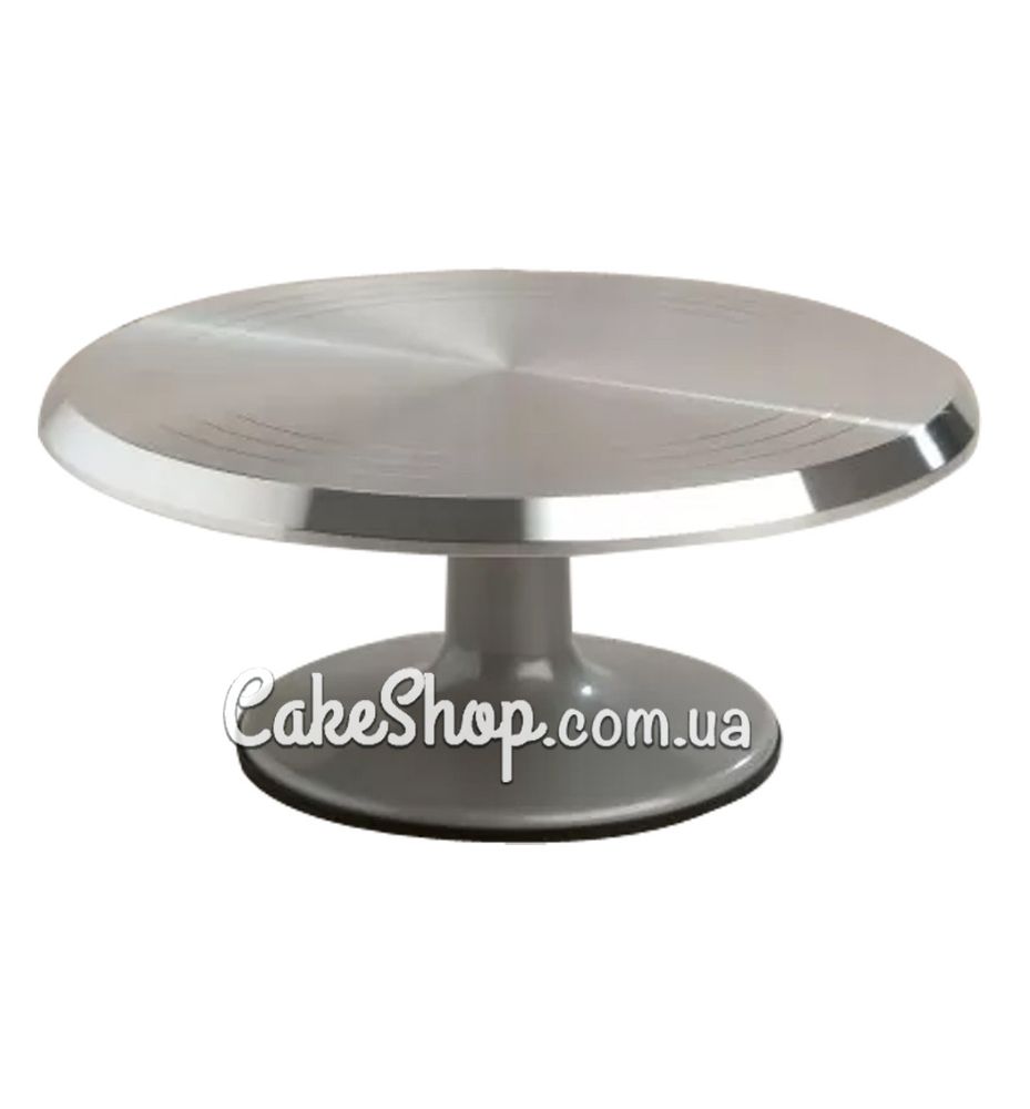 Підставка, що обертається для торта, дозволяє легко і зручно декорувати торт і створювати квіти. Підставка рівна, легко повертається, дуже міцна, підходить як для домашнього, так і для професійного використання. Ніжка підставки прогумована, що запобігає ковзанню підставки по поверхні столу. Підставка зроблена з металу, поворотний механізм - підшипник.