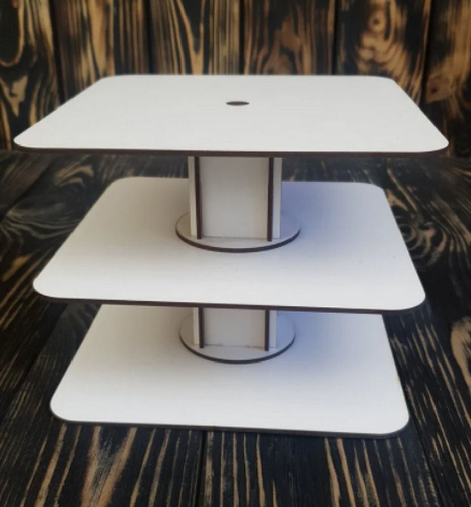 Підставка поворотна на 3 рівня з ДВП біла (18х18 см)
