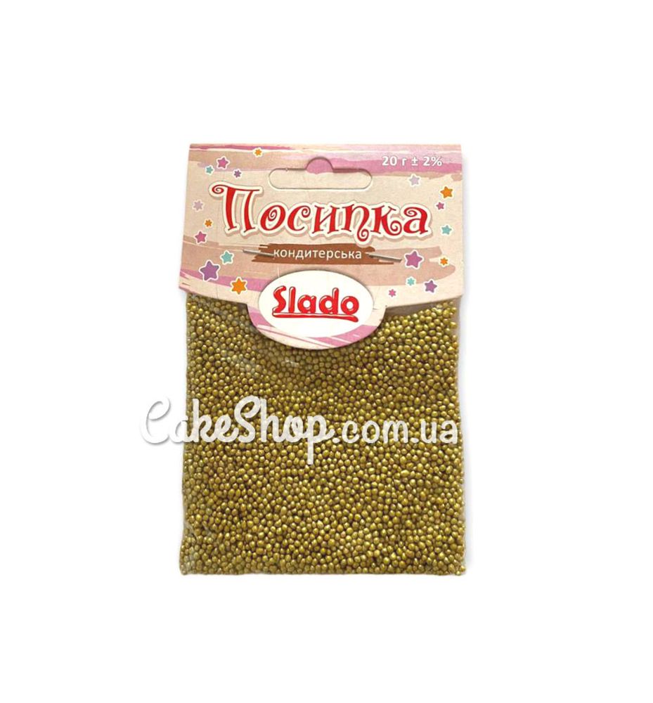 Ціна на Посипка кругла металік ТМ Сладо золота 1 мм, 20г дорівнює 18 грн.