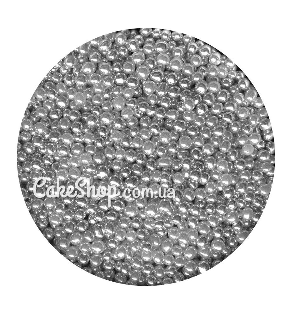 Ціна на Посипка Кульки Срібні 3 мм, 50 г дорівнює 65 грн.