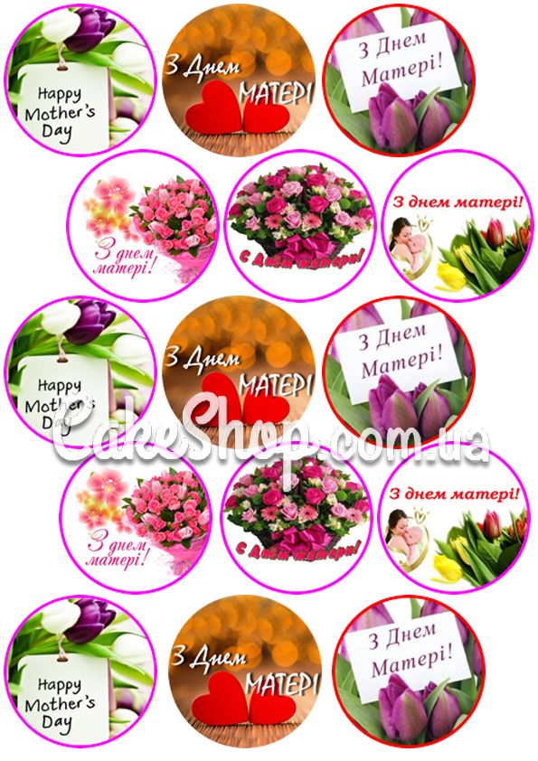 Ціна на Цукрова картинка для капкейків З днем матері дорівнює 95 грн.