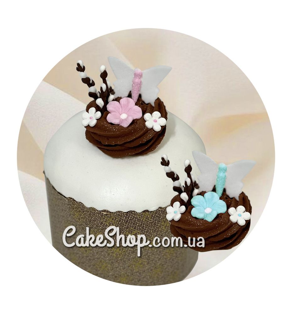 Цукрові декорації Гніздечко з метеликом коричневе ТМ KD