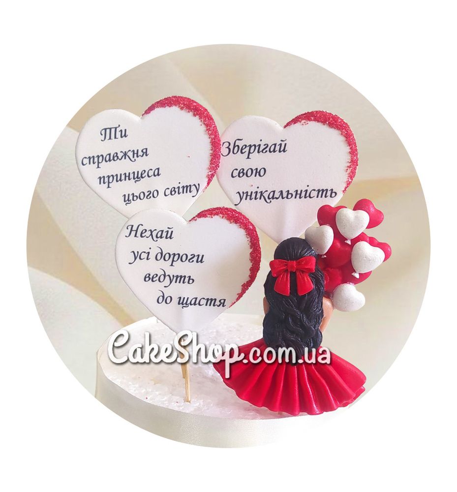 Цукрові фігурки Дівчинка з сердечками в червоному (брюнетка) ТМ KD