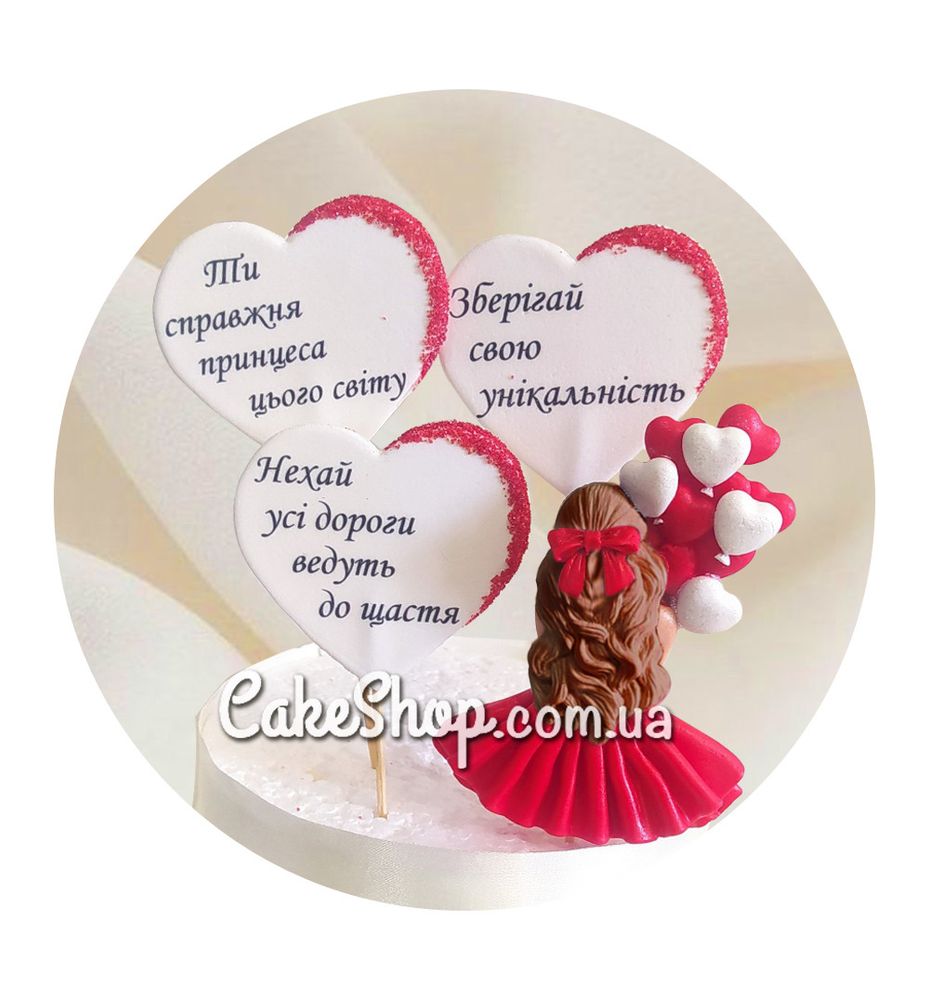 Цукрові фігурки Дівчинка з сердечками в червоному (шатенка) ТМ KD