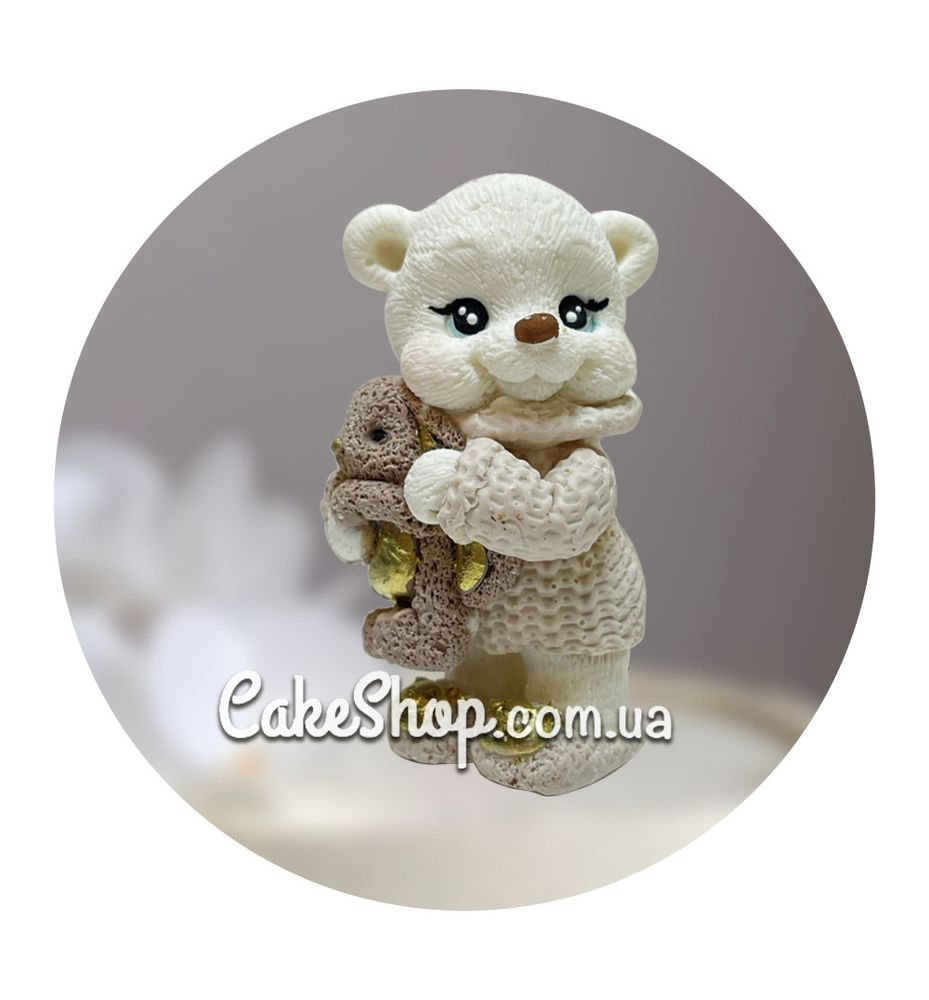 Шоколадна фігурка Ведмедик Білий з беж Іграшкою в беж светрі ТМ ДімК