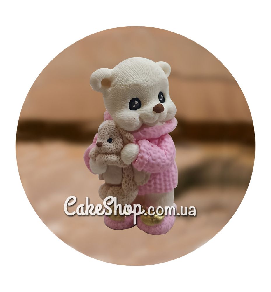 Шоколадна фігурка Ведмедик Білий з беж Іграшкою в рожевому светрі ТМ ДімК