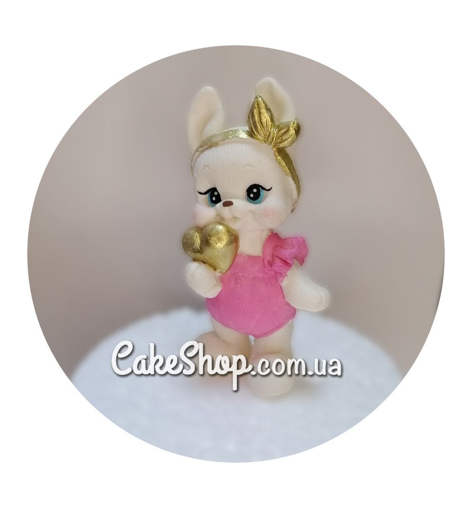 Шоколадна фігурка Зайча з сердечком Біло-рожеве ТМ ДімК