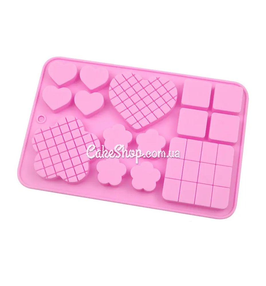 Розмір осередку: Квадрат- 5,5х5,5 см; 2,5х2,5 см; серце - 6,2х5,5 см; 2,5х2 см; квітка - 6х6 см; 2,5х2,5 см; глибина - 0,9 см