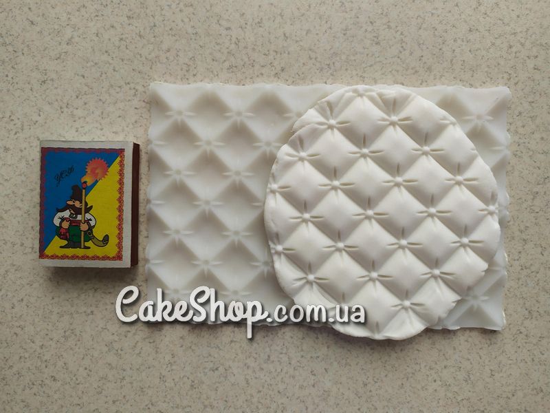 Правила роботи з силіконовими текстурними матами також дуже прості. Для початку розкачайте мастику тонким шаром, потім покладіть її на мат і ще раз, але вже із зусиллям розкачайте її качалкою. Або ж навпаки покладіть килимок на вже розкатану мастику і пройдіться по ньому качалкою. Зніміть мат і акуратно перенесіть мастику на торт.