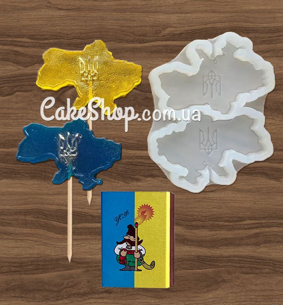 Ціна на Силіконовий молд для льодяників Карта України з тризубом дорівнює 124 грн.