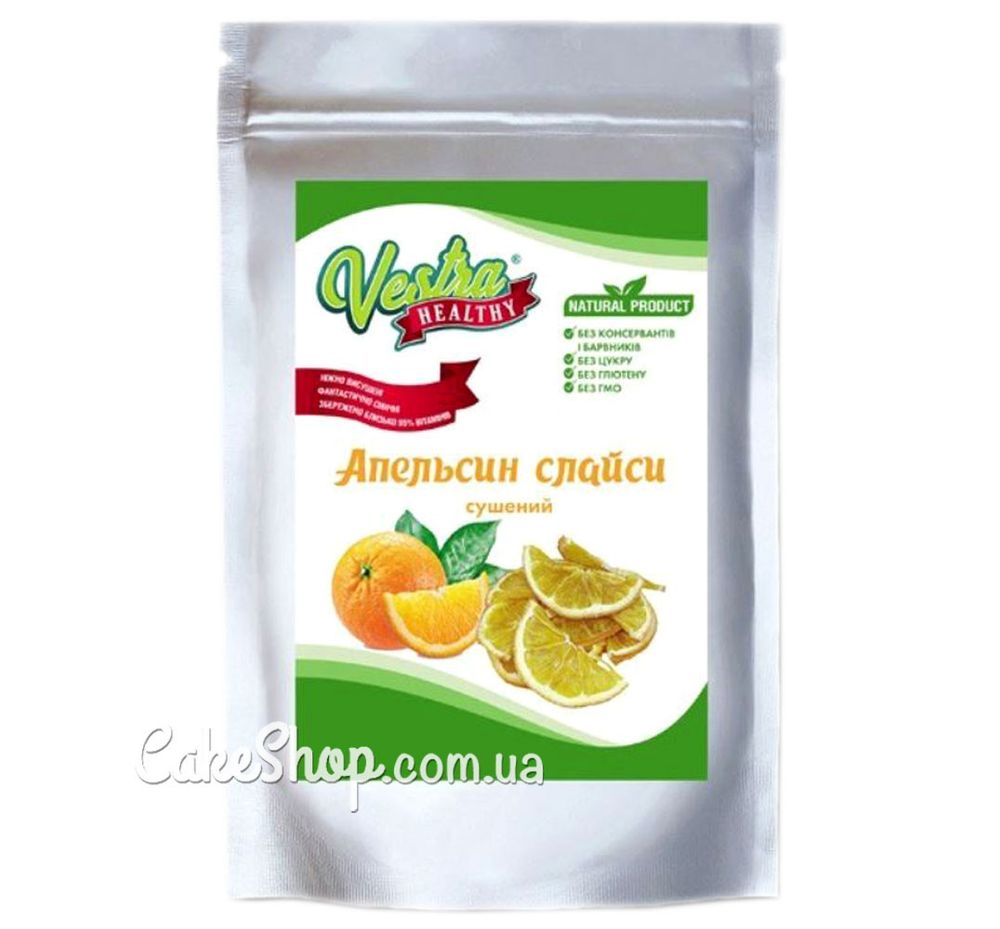 Ціна на Апельсин сублімований слайси Vestra, 50 г дорівнює 130 грн.