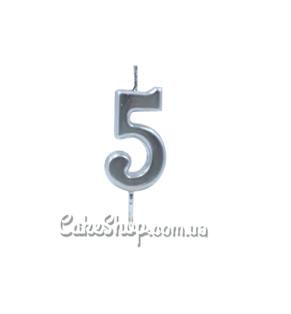 Свічка цифра для бенто-торта Срібло - 5