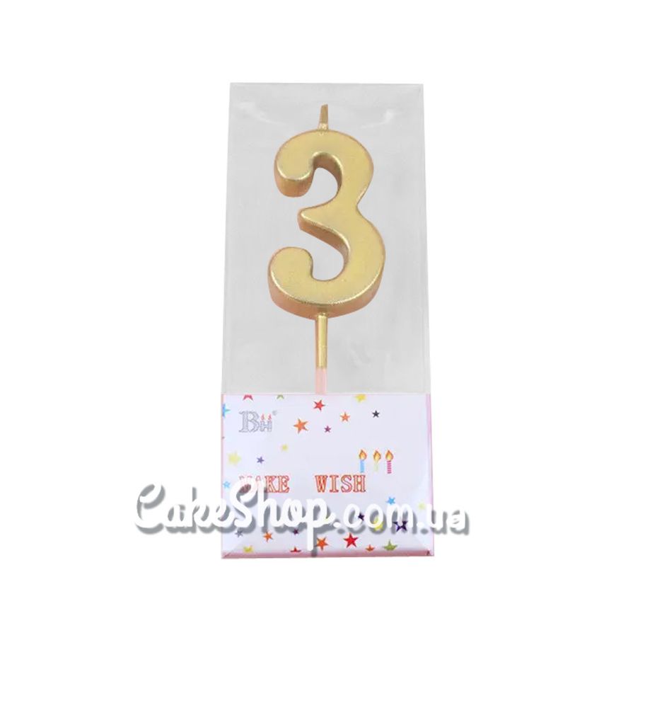 Ціна на Свічка цифра міні Золото - 3 дорівнює 25 грн.