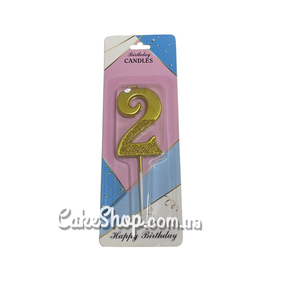 Ціна на Свічка цифра з блискітками Золото - 2 дорівнює 40 грн.