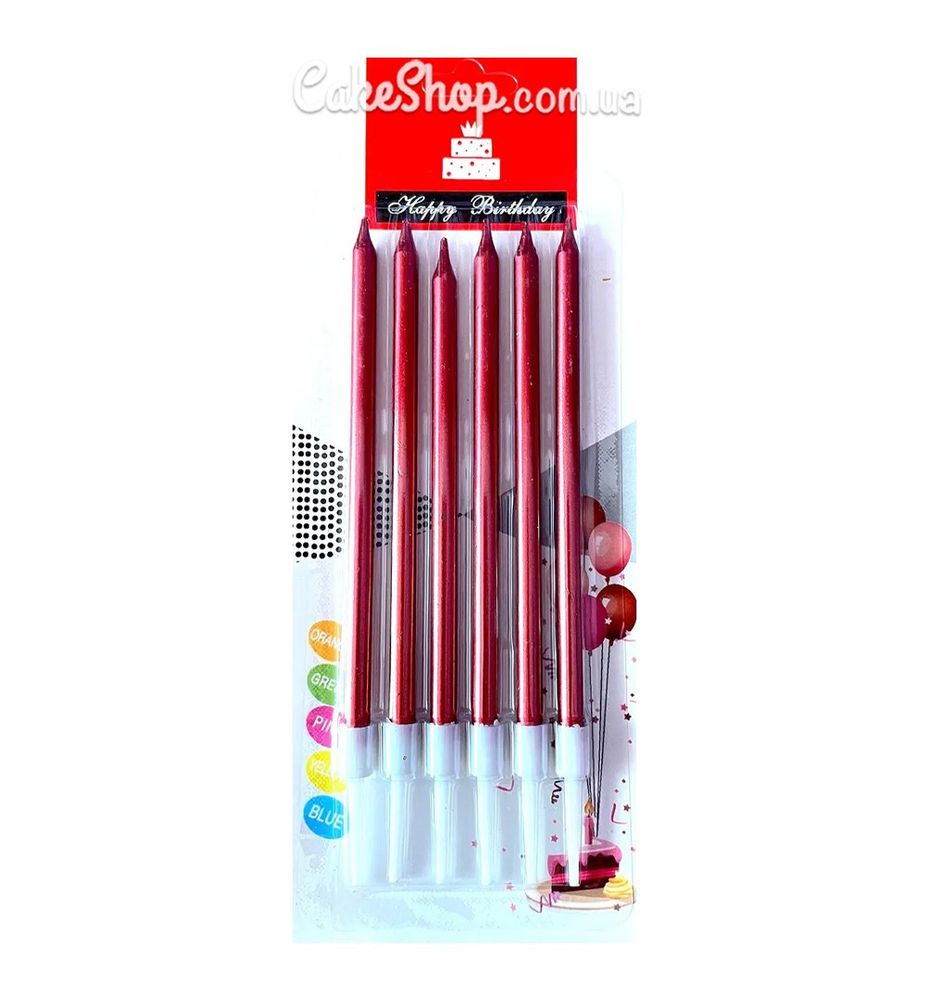 Свічки для торта Металік червоні 13 см, 6 шт