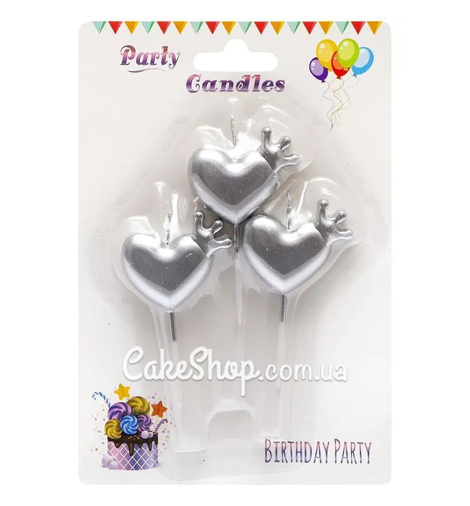 Свічки для торта Серця з короною срібні