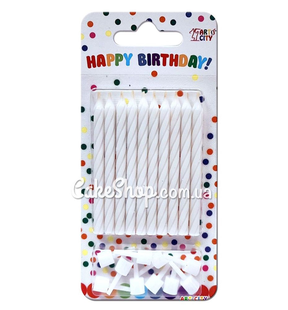 Свічки тортові на ніжці Спіраль білі, 10 шт