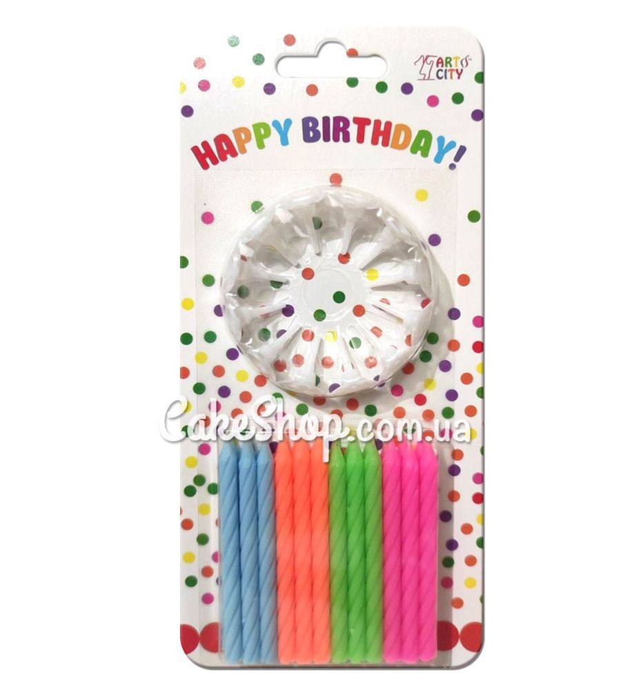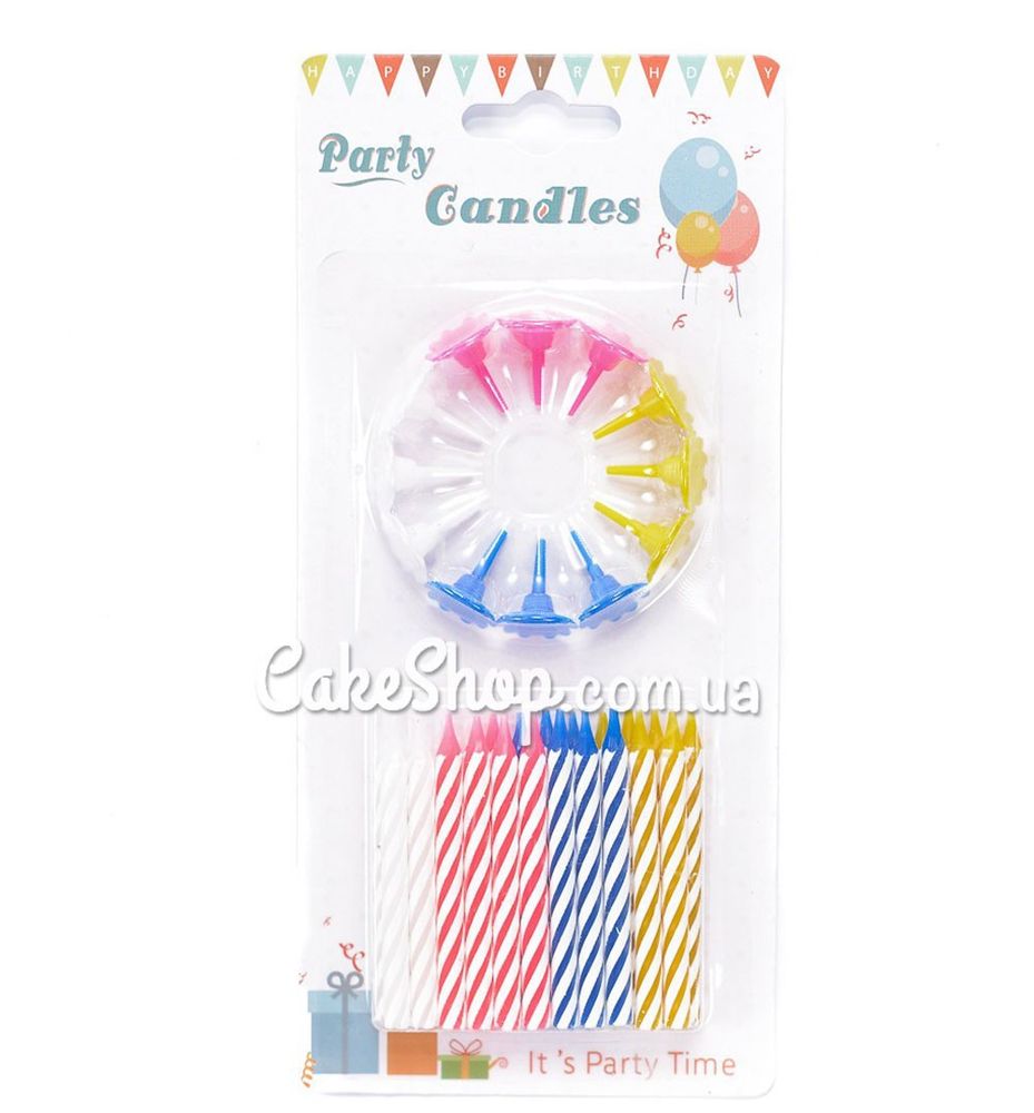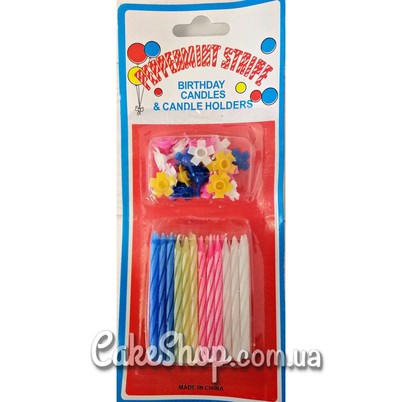 Свічки тортові на ніжці Спіраль асорті, 24 шт