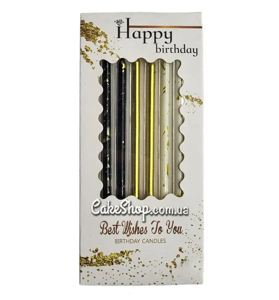 Свічки тортові прямі Чорні-золоті-білі