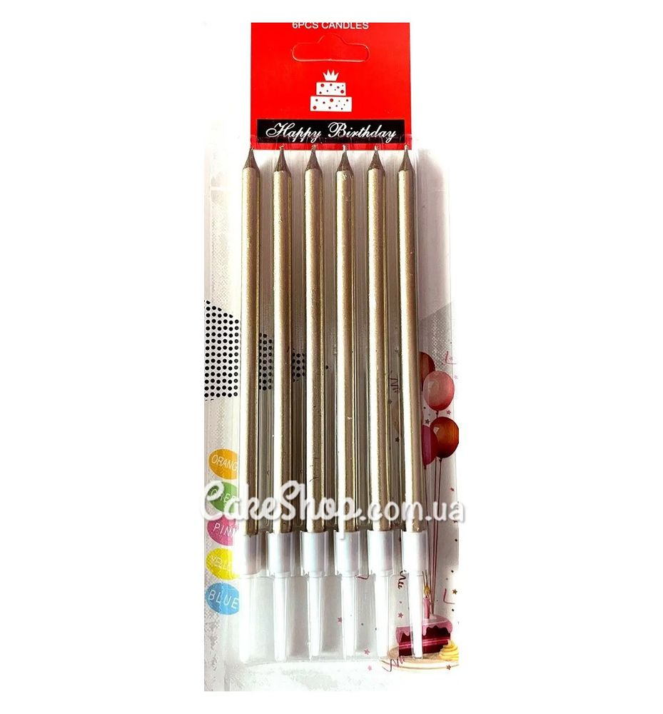 Ціна на Свічки для торта Металік золото 13 см, 6 шт дорівнює 43 грн.