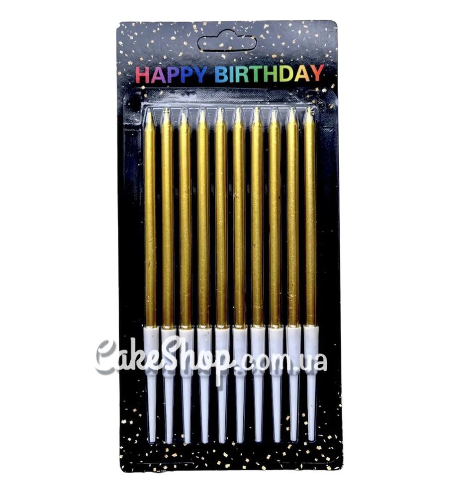 Свічки для торта Металік золото 13 см, 10 шт