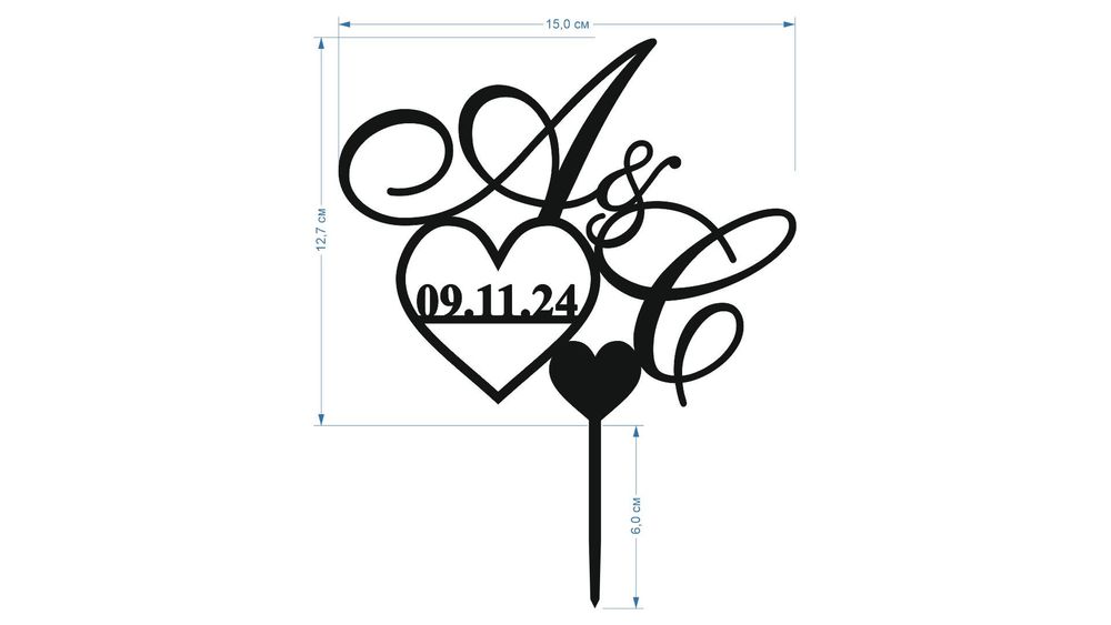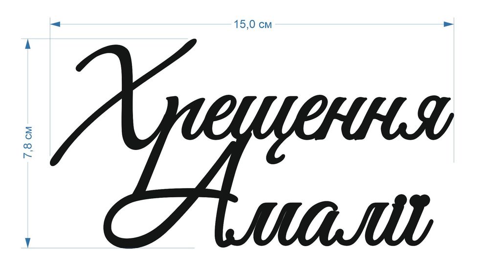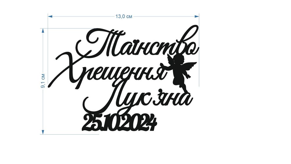 2. Розмір ....13 см.... (відштовхуємось від головнішого параметру, або висота або ширина, який параметр є в пріорітеті. Якщо топпер з ніжкою то розмір вказуйте самого напису, а розмір ніжки вказуйте окремо.