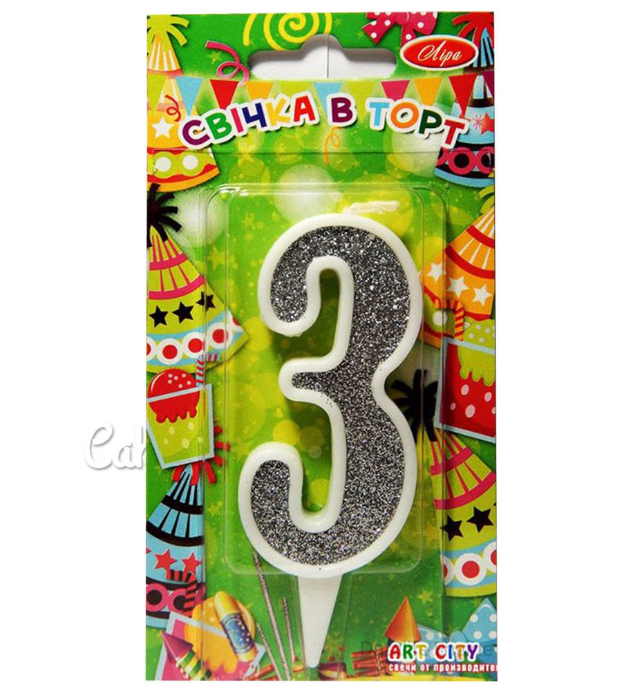 Ціна на Тортова свічка цифра Класика срібло - 3 дорівнює 12 грн.